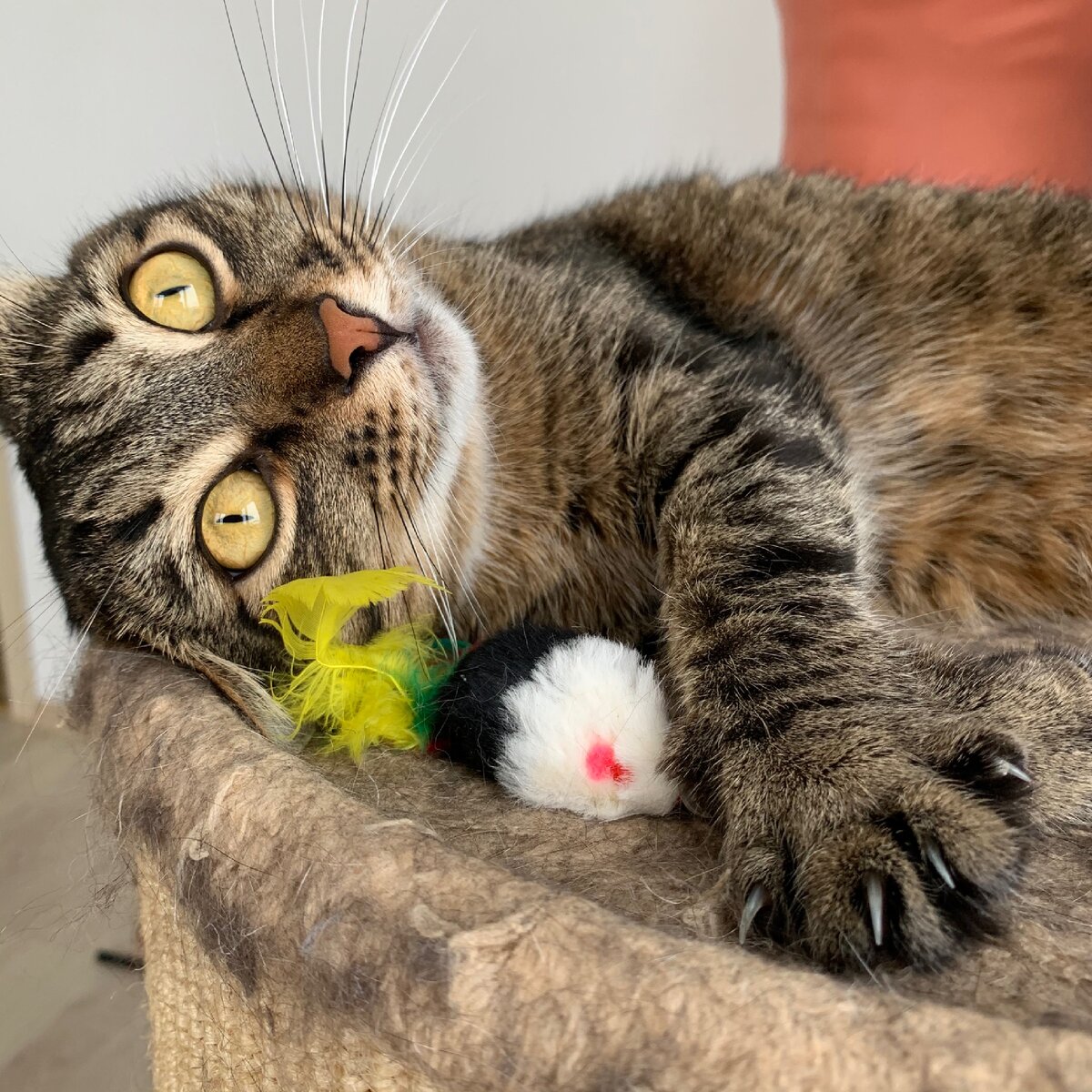 Вспоминаю своё детство, тогда у меня тоже была кошка, Муська. У многих были кошки и коты, дети любили с ними играть, все так же, как и сейчас. Только тогда самой популярной игрушкой была ниточка с бантиком из конфетного фантика на конце. Никаких затрат и котам веселье. Можно было бегать с этой ниточкой, а можно было просто привязать к ручке двери и кошка сама играла. На самом деле котам все равно, чем играть. Если нужно, то они и сами себя займут. Найдут фантик, пакетик, какую-нибудь мелочь и будут гонять этот предмет лапками. Им плевать на цвет игрушки и тем более плевать на то, сколько игрушка стоит. Но уровень жизни в обществе растёт, коммерция развивается, поэтому сейчас такое изобилие товаров для животных. Но на самом деле все эти красивые игрушки и примочки больше для хозяев, чем для животных. Я и сама склонна покупать всякую яркую мелочь для котов. Дома по полу везде раскиданы яркие игрушки. Почти каждый поход в зоомагазин заканчивается приобретением очередного мячика или мыш