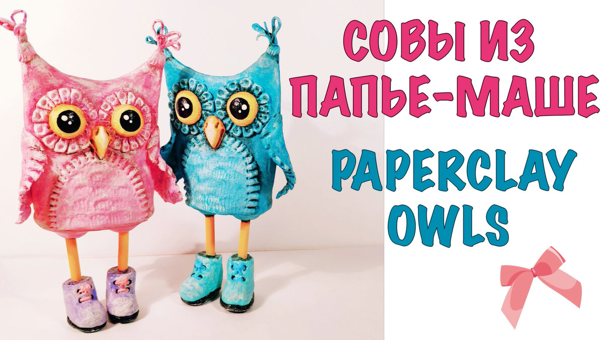 Сегодня я покажу вам, как можно слепить очаровательных сов из самодельной массы папье-маше (паперклей). Совы сделаны полностью из массы папье-маше (за исключением лапок - палочек) без использования пластики, ниток и прочих материалов. Сегодня я покажу вам, как можно слепить очаровательных сов из самодельной массы папье-маше (паперклей). Совы сделаны полностью из массы папье-маше (за исключением лапок - палочек) без использования пластики, ниток и прочих материалов. Для работы понадобится: масса папье-маше, фольга, 2 палочки (например, от суши), акриловые краски, стеки и кисти. В мастер-классе показаны 2 варианта лапок, и с тем и с другим вариантом совы смотрятся очень красиво, так что, выбирайте тот, который вам больше понравится. Для склейки всех деталей и выглаживания массы я использую обычную воду. Все свои работы я раскрашиваю акриловыми красками и покрываю акриловым лаком. Приятного просмотра! Рецепт папье-маше (я работаю с массой №1):