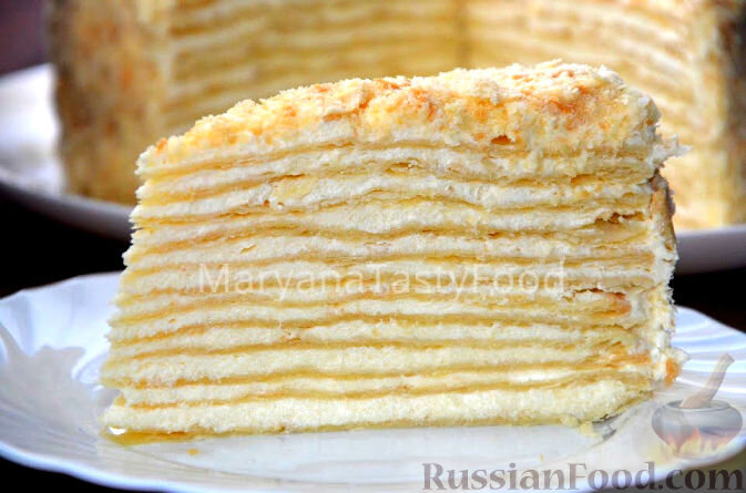 Продукты Для коржей: Мука - 750 г Масло сливочное (холодное) или маргарин - 400 г Яйца - 2 шт.Вода холодная - 150 мл Водка или коньяк - 3 ст. л. Уксус 9% - 1 ст. л. Соль - щепотка *Для заварного крема: Молоко - 1 л Яйца - 4 шт. Мука - 100 г Сахар - 300 г Ванильный сахар - 20 г Масло сливочное - 300 г (для взбивания) + 50 г (в горячий крем) Как приготовить торт "Наполеон":