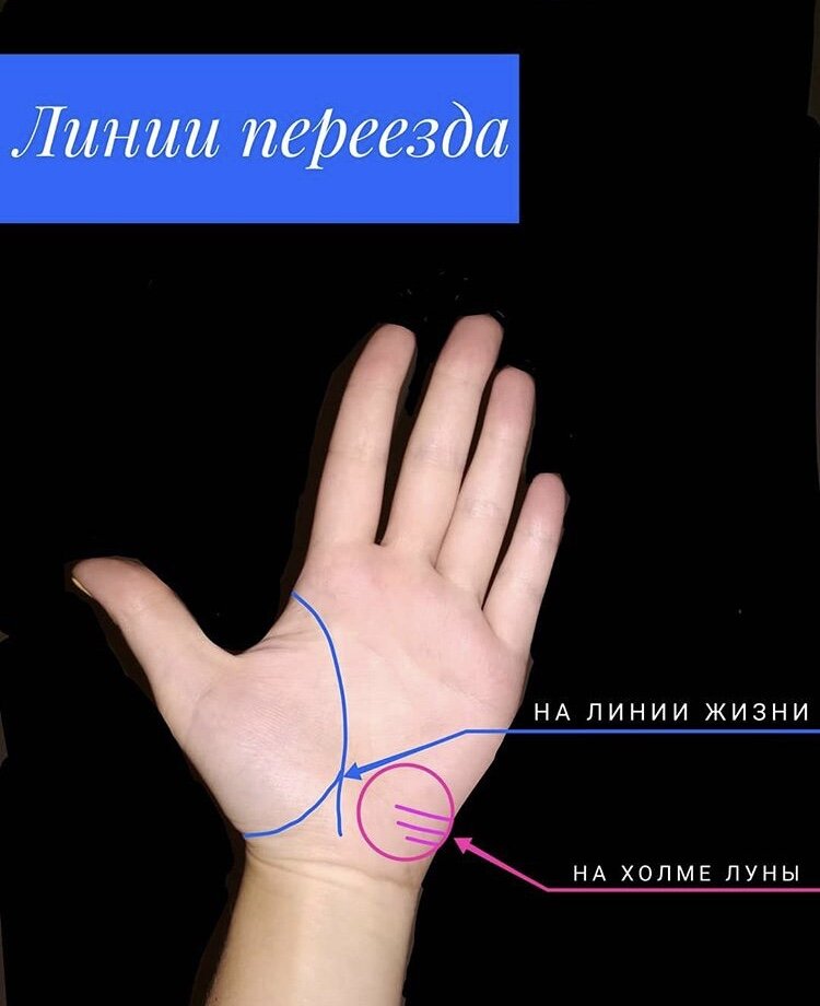 Линия путешествий/переездов. Хочется рассказать про линию Путешествий. Уж очень популярная нынче тема. Итак, склонности к странствиям и путешествиям можно определить двумя способами: ⏺ по сильным и чётким линиям на холме Луны; ⏺ по мелким и тонким линиям, которые отходят от линии Жизни, но при этом сопровождают ее. Однако следует сказать, что предсказания будущих путешествий более важны на линии Жизни, чем на холме Луны, которые относятся к незначительным переездам или путешествиям. Что касается знаков, то: ❌ Если линия Путешествий заканчивается крестом - путешествие кроме огорчения и разочарования ничего не принесёт. ⭕️ Если линия заканчивается островом - во время или после путешествия последует какая-то утрата. ⏹ Если на линии имеется квадрат - во время путешествия человеку угрожает опасность, которой он сможет избежать. ✔️ Если линия пересекает руку и входит в холм Юпитера - знак того, что человек в результате длительного путешествия приобретёт хорошее положение. ✔️ Если линия вход