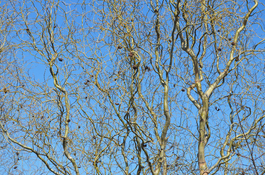 Гуляя зимой по городу, увидела такое вот необычное извилистое дерево. Причём, у него не только ветки извилистые, но и стволы. На нём висели сухие шишки-не шишки, плоды-не плоды... Диковина, в общем. Может быть, яблоня такая? Уже позже выяснилось, что это не яблоня, а ива - ива Матсудана, японское декоративное дерево.