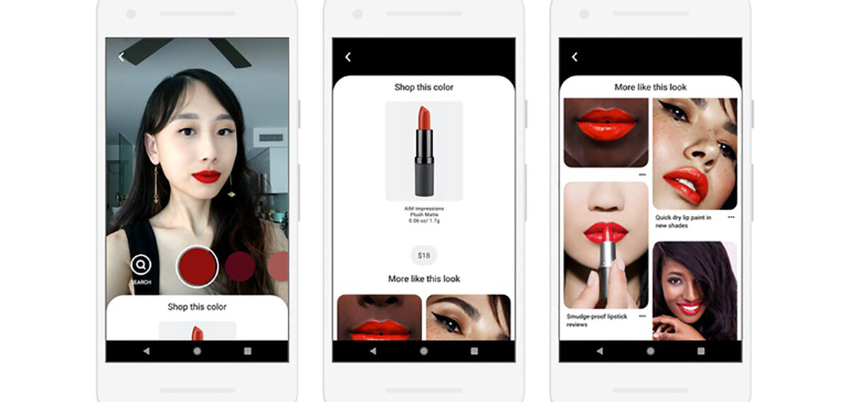 mage by Geyzerrr На прошедшей неделе Pinterest запустил AR маски с "примеркой" губной помады для части косметических брендов. В число избранных вошли Estée Lauder, Sephora, bareMinerals, Neutrogena, NYX Professional Makeup, YSL Beauté, Lancôme и Urban Decay от L'Oréal. Функция "Try On" работает с инструментом визуального поиска Pinterest, который может распознавать 2,5 миллиарда объектов, для примерки макияжа на селфи. Чтобы попробовать эту функцию, пользователи должны нажать на значок камеры объектива в поиске, а затем нажать кнопку «примерить». После примерки товар можно купить не выходя из соц сети. Также пользователи могут найти функцию "Try On" из текстового поиска, по запросам связанным с помадой, например «красные губы». "Try On" не использует сглаживание кожи или деформацию лица. Из главных фишек этой AR функции можно отметить, что цвет помады подстраивается под оттенок кожи для более реалистичного эффекта. Если другие соц сети подают свои AR маски как развлечение, то Pintere