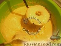 Добавляем просеянную муку и замешиваем тесто, которое должно иметь консистенцию сметаны.