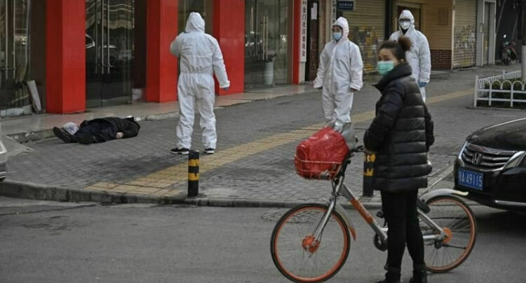 Люди заряженные коронавирусом падают прямо на улице Уханя .