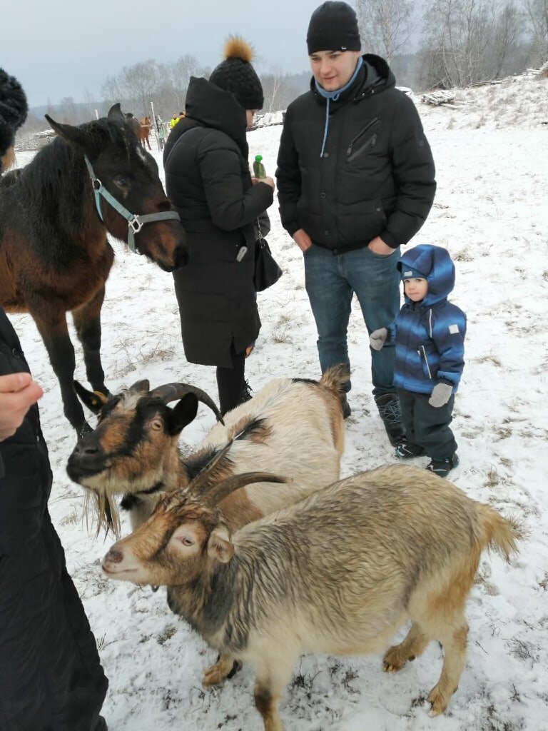 Вы и ваши дети встретятся с лошадьми, пони и осликом. Вас очаруют милые козочки, куры, утки, гуси. Раздолье!