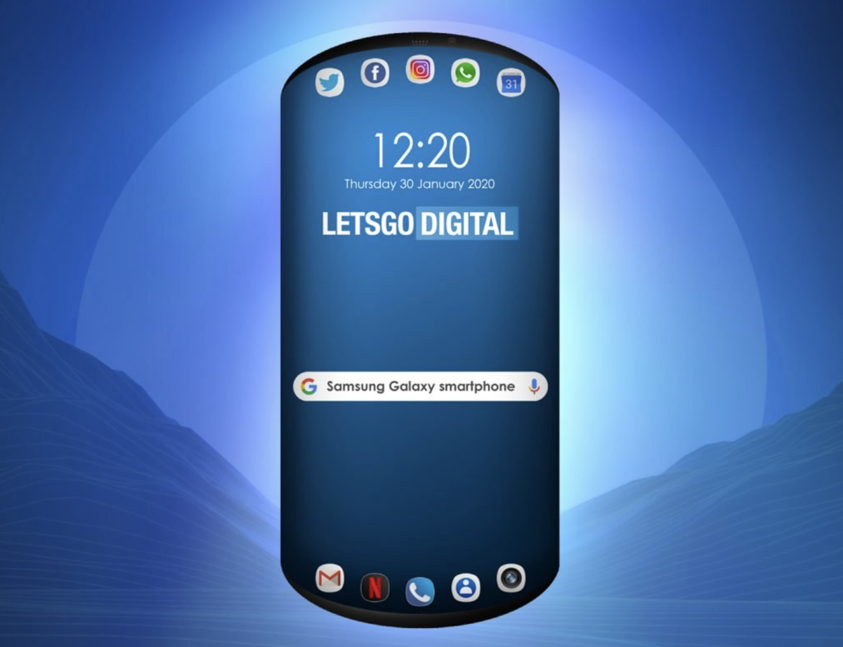 Компания Samsung по видимому хорошо понимая сдачу своих позиций в производстве смартфонов привычного всем вида в этот раз решила удивить не только своих поклонников, но и всех владельцев умных телефонов, представив новый патент устройства линейки Galaxy с уникальным и футуристическим дизайном. Новинка имеет три отдельных дисплея, но не в классическом нашем представлении, как, например, двух-дисплейный Galaxy Fold, а в совершенно ином представлении. Устройство не содержит каких-либо внутренних, внешних или иных панелей с экранами. Все дисплеи смартфона расположены на передней панели, два из которых являются вспомогательными и содержат функциональные значки приложений и один основной для вывода изображений. Внешняя форма устройства напоминает прямоугольник со скруглёнными краями. Расположенные по краям, дисплеи с одним закруглённым внешним краем являются вспомогательными. В верхнем дисплее наблюдается прорезь для размещения динамика и круглое отверстие под фронтальную камеру. Располож