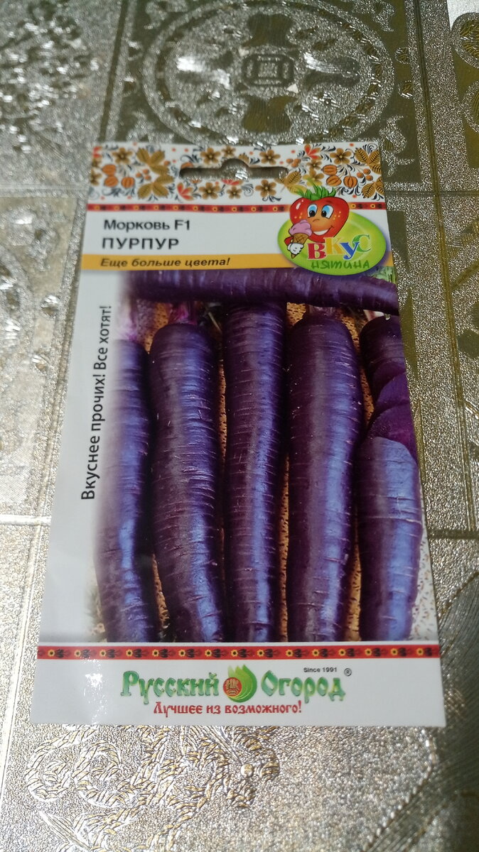 Давно хотелось мне попробовать чего-нибудь экзотического вырастить на своем огороде. А тут в магазине встретила упаковочку семян моркови с необычным цветом. Она была сиреневой! Во, интрига! Покрутила пакетик, повертела, почитала, решила купить. А цена у данного гибрида высокая. Семян всего лишь 100 штучек. Но как же я его захотела испытать на своей земле! Она у меня глинистая, тяжелая. Не каждая морковка захочет в ней расти. Я каждый год испытываю множество сортов и гибридов моркови. Это дает мне знания о тех морковках, которые я хочу повторить на следующий год, а которые не могут раскрыть свой потенциал на таких землях и я их заношу в список отказников, указывая причину. Привлек не только цвет моркови, но и обещания производителя о том, что все корнеплоды этого гибрида выравнены и обладают превосходным вкусом. А так же высокоустойчивы к заболеваниям и не зацветают в условиях климата средней полосы России. Весной перед посевом семян использовала отличный метод быстрого проращивания мо