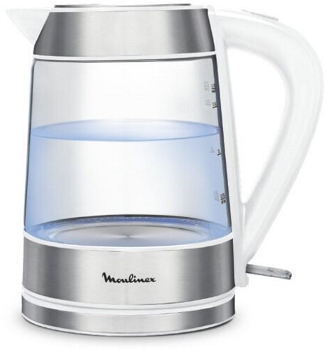 Электрический чайник Moulinex BY730132 имеет прозрачный стеклянный корпус, оснащенный подсветкой у основания, что позволяет наблюдать за процессом закипания воды. Устройство активируется при помощи тумблера. Емкости 1,7 л достаточно, чтобы заварить напитки для трех и более пользователей. Скрытый под металлическим диском нагревательный элемент имеет форму спирали и быстро доводит жидкость до необходимой температуры. Для определения уровня воды на корпус нанесена мерная шкала с отметками минимально и максимально допустимых объемов воды. ЦЕНА 1 990 р. Купить можно здесь