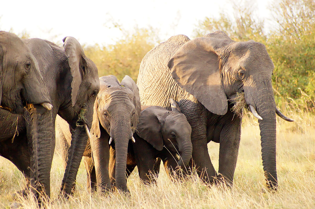 Красная Шапочка просто никогда не была в Африке. Потому что если бы была, ей бы в голову не пришло называть волчьи уши "большими". Впрочем, и пасть не показалась бы слишком страшной. Но про обладателей пастей я расскажу в другой раз. Сегодня у меня - уши. И хоботы. Кстати, вы знаете, почему слоны умирают? У них кончаются зубы. Но об этом ниже. Слоны смотрятся в саванне довольно компактно. Не торчат вверх, в отличие от жирафов. Но и не прячутся в траве, как львы. Мне очень понравилась слоновья шкура. Вся такая в морщинках. Молодые слоны покрыты тёмными волосами, которые с возрастом вытираются. Складками на животе они ловят мух и других назойливых насекомых. Слоны могут кожу расслабить, а потом снова сморщить, они ловят в складки насекомых, там их сжимают и убивают (вычитала в интернете, звучит бредово). Ну, и уши. Уши шикарные. Они выполняют роль веера, а заодно слоны ими потеют. А хоботы! Обычная длина хобота — около 1,5 м, вес — 135 кг. Вообще я, конечно, видела слонов в Азии, в изоб