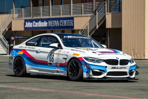 Это 2018 BMW M4 GT4 является заводской гоночный автомобиль, который был приобретен BMW из Сан-Франциско и агитировал в 2018 SprintX GT и США Touring Car Championships.Автомобиль питается от турбированного 3.0 L S55 inline-six в паре с семиступенчатой коробкой передач с двойным сцеплением и дифференциалом с ограниченным скольжением. Оно закончен в белизне с графиками M, и характеристики включают систему jack воздуха, крюки кудели, клетку крена, пакет Trans холодный, модуль MoTeC GPS, систему бутылки питья RPX, и больше. Экстерьер выполнен в белом цвете с M tricolor и BMW of San Francisco graphics. Оборудование включает усиленный углеродным волокном полимерный капот, передний сплиттер, заднее крыло, крышу, двери и корпуса зеркал, а также систему воздушного домкрата и передние и задние буксирные крючки. Черный 18 " BBS motorsport wheels wear Pirelli P Zero racing slicks размером 305/660. M4 GT4 был оснащен заводскими амортизаторами Öhlins.Торможение осуществляется шестипоршневыми передни