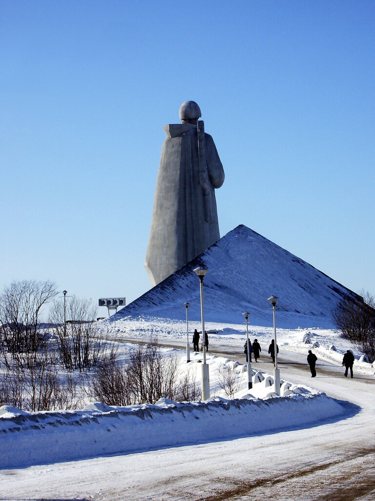 За Семеновским озером («Семечкой»), на пологом холме стоит бетонный «Алеша» — мемориал в честь защитников советского Заполярья. Смотрит он, конечно же, в сторону Норвегии.