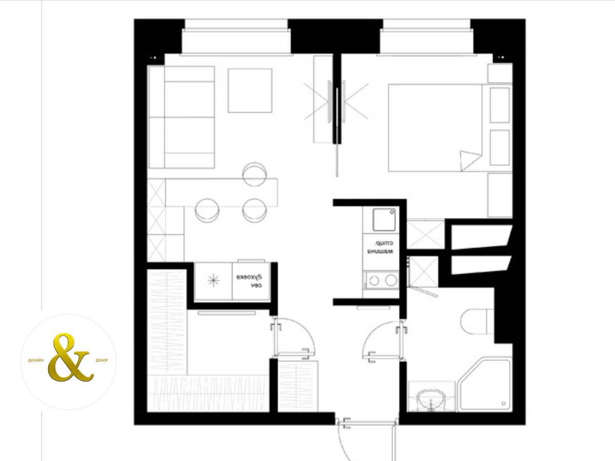 Как раз, если мы сократим зал, мы получим небольшую комнатку в 4-6 квадратов под всю одежду, обувь и прочее. Все ненужное можно прятать именно там.
