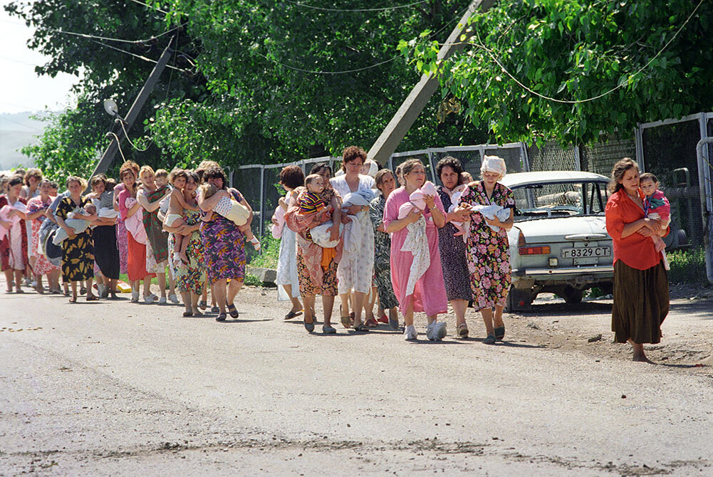 Цикл статей «Чеченский след». Марш матерей. Одно из самых страшных имен того времени – Шамиль Басаев. Полевой командир, окроплённый опытом ведения боевых действий, был сторонником жестких мер. Одной из которых – захват родильного отделения в городе Будённовск. Как вооруженные до зубов террористы проехали 150 км от Чечни до Ставропольского края до сих пор до конца неизвестно. Как утверждает сам Басаев, каждый блокпост, которых было по дороге не мало, был подкуплен, хотя существует версия заговора против Ельцина. Ведь удивительно, что захват заложников осуществили после слов Президента РФ о фактической победе в конфликте. При таком стечении обстоятельств заговорщики достигли своей цели, ведь Борис Николаевич, узнав о происходящем, истерически закричал в своем кабинете об уходе с поста. По конституции, хотя кому она в т годы была важна, власть переходила Черномырдину, тому самому, который вопреки всем уже устоявшимися канонам, вел лично переговоры с Басаевым. Поэтому тот и получил же