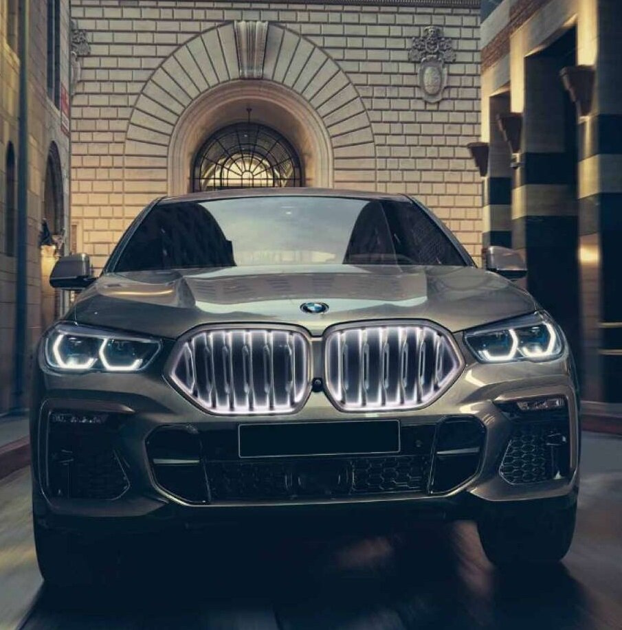 BMW X6 Новый BMW X6 будет доступен в стандартной версии и в вариантах xLine и M Sport. Эти две версии оборудованы особыми элементами дизайна. Большая решетка радиатора с общей рамкой - самая яркая особенность передней части автомобиля - теперь внешние края рамы решетки достигают фар под четко обозначенным углом. Новый BMW X6 будет доступен впервые с опцией подсветки решетки радиатора. Подсветка активируется, когда вы открываете автомобиль (центральный замок и его двери), аналогичная ситуация с закрыванием автомобиля (она включается при выходе), и водитель может вручную включать и выключать эту подсветку. Освещение решетки радиатора также можно включить во время движения.