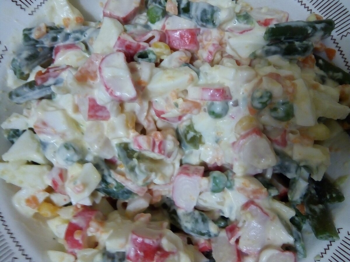Салат с овощами и крабовыми палочками
