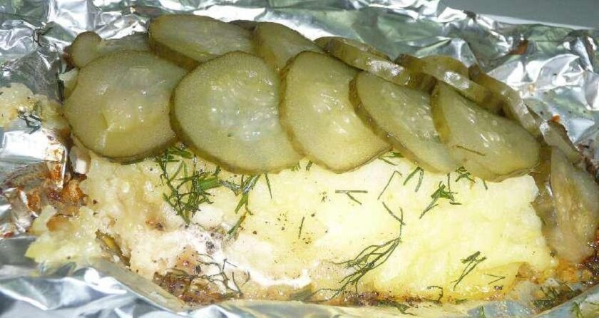 Рыба, запеченная с солеными огурцами: легкий ужин для всей семьи