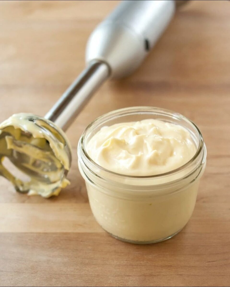 В рецептах домашнего майонеза меня всегда смущало наличие сырых яиц. Несмотря на то, что у нас есть возможность покупать домашние деревенские яйца, я все равно не рискую делать майонез с яйцами . На просторах интернета нашла простой рецепт, которым теперь пользуюсь. Делюсь и с вами. Несколько секретов, чтобы ваш майонез обязательно получился: 1. Чаша блендера должна быть обязательно узкой. 2. Взбиваем погружным блендером, миксером у меня не получилось 3. Блендер опускаем до дна чаши и поднимаем только по истечении 30 секунд взбивания, когда будет видно, что ингредиенты загустели. Затем постепенно перемешиваем массу, продолжая взбивать. 4. Температура продуктов тоже важна! Молоко должно быть из холодильника, растительное масло - комнатной температуры. Существует мнение, что продукты должны быть одной температуры, я пробовала делать с теплым молоком, майонез получается жидким. 5. Лимонный сок можно заменить уксусом, лучше если яблочным, получится вкуснее. 6. Растительное масло используйт
