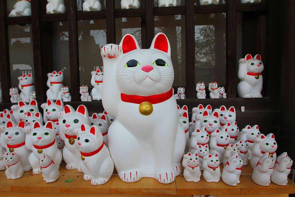 Манэки-нэко продаются повсеместно, заполняя полки всех сувенирных лавок. Самым сакральным местом для шопинга является токийский храм Готоку-дзи, где в XVII столетии и начался культ манящих котов.