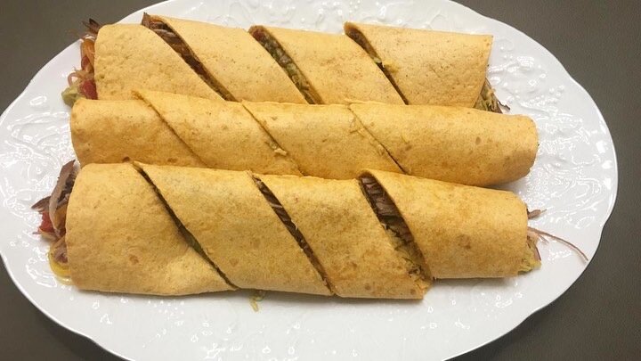 Так же, как в предыдущем посте, можно сделать телятину — я, например, свинину не люблю и не ем. А из этой рваной телятины потом соорудить вот такие вкусные буррито.