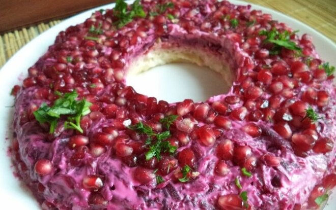 Салат "Гранатовый браслет" с тунцом поставить в холодильник на 3-4 часа.