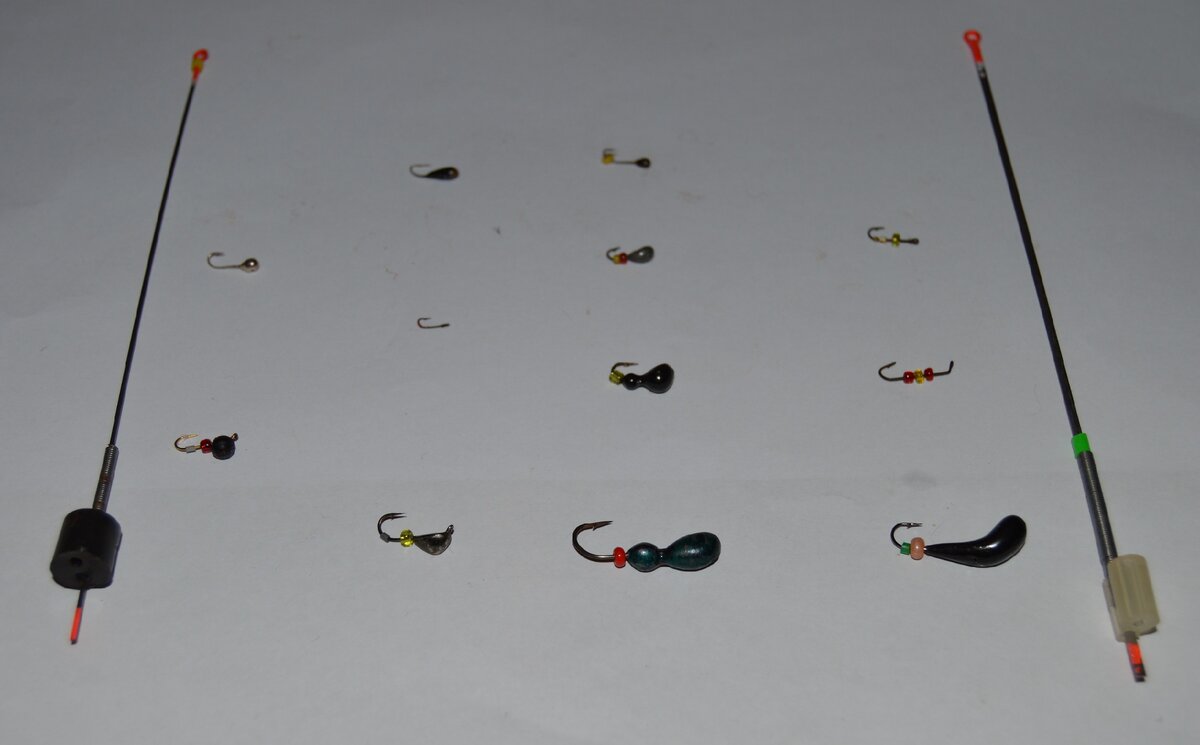 Что касается кивка...Здесь используется более жёсткий его вариант. И тестировать его нужно ещё дома. Делается это простым способом. Все мормышки (кроме самой нижней) собираются вместе. При опускании нижней мормышки на пол, кивок должен среагировать заметным изменением своего изгиба.