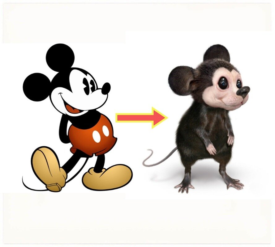 Всем привет. Мультфильмы нравятся взрослым и детям. В этой статье мы покажем вам несколько персонажей мультфильмов в реальном мире. Поехали. Микки Маус Вышедший из под руки Уолта Диснея в далеком 1928 году озорной черный мышонок очень быстро обзавелся кучей фанатов по всему миру. Мы все в детстве смотрели на Микки в разных образах и хотели, что бы он сошел с экрана телевизора и поиграл с нами. Ну вот так бы он выглядел в своей антропоморфной форме в реальном мире. Все-таки лучше пусть побудет на экранах. Снежный король "Время приключений" В прошлом Саймон был хорошим человеком, но после того как он стал Снежным королем, его внешность и характер поменялись в худшую сторону. Он стал завистливым и злым старикашкой. У него бледная и синяя кожа, длинный заостренный нос. Он носит синюю накидку, скрывающую его тощее тело. И вот так бы он выглядел в нашем мире. Стич "Лило и Стич" Стич- один из образцов злого ученого Джамбы Джукибо, созданный для разрушения и уничтожения. Но после встречи с Л