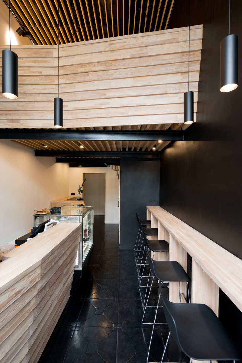 Фото: Илья Иванов В качестве основного был выбран формат ”local place” - небольшой кофейни в первом этаже жилого дома в непосредственной близости от метро — для местных жителей, работников окружающих офисов и студентов ВУЗов, которых в округе великое множество. Основная тема дизайна интерьера навеяна названием сети: COFFEE CREW (crew — в переводе с английского «артель», «экипаж», «судовая команда»). В качестве основного материала использована древесина. Из бруса и доски лиственницы сделаны потолок, обрамления дверных проемов, гостевая и барная стойки. Барная стойка — главный элемент интерьера — облицована со ст