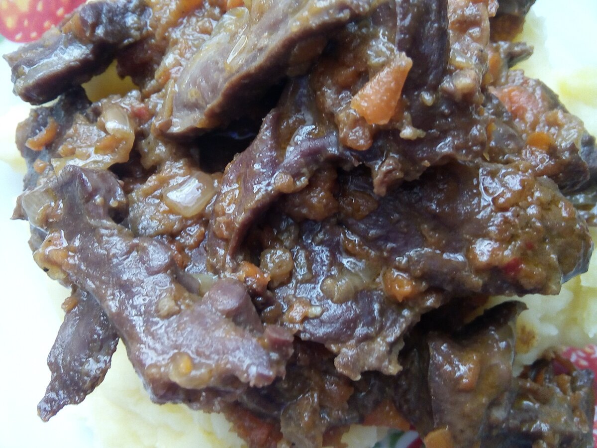 Тушенное свиное сердце. Субпродукты тоже могут быть вкусными