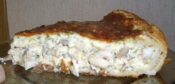 ИНГРЕДИЕНТЫ: ● 400 гр. куриного мяса (грудки). ● 1 банка консервированных шампиньонов. ● 1 пласт слоеного теста (примерно 300 гр.). ● 3 яйца. ● 200 мл сливок. ● 300 гр. сыра. ● 2-3 луковицы. ● Зелень: пара веточек укропа, зеленый лук и все, что Вы предпочитаете. ● Соль, перец, приправа для курицы (по вкусу). ПРИГОТОВЛЕНИЕ: 1. В сковородке разогреваем растительное масло. На нем обжариваем нашинкованный лук (можно мелко, полукольцами или кольцами). 2. Куриное филе режем кусочками (любой длины и толщины), солим, перчим, засыпаем приправкой и перемешиваем. Добавляем к луку и жарим до золотистого цвета курицы. 3. Вскрываем банку грибов, сливаем воду. Режем грибочки. Добавляем к курице (уже снятой с плиты) и хорошо перемешиваем. На плиту не ставим - не жарим. 4. В мисочке взбиваем три яйца, добавляем сливки. 5. Туда же натираем сыр (на любой терке). Шинкуем зелень. Солим, перчим. Хорошо мешаем. 6. Разогреваем духовку до 200о. 7. Пласт теста (предварительно размороженный, если покупной) ра