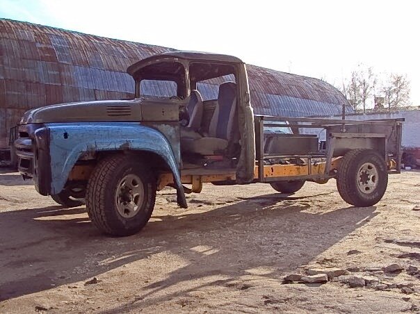 И еще одно — из-за длинной базы и конструктивных особенностей крепления автомата, получившийся дорожный просвет минимален, при меньшем я просто не выеду из гаража, повисну на брюхе на пол пути к победе))) В итоге высота Зила составляет 1.90 м, у стандартного зила 2.40, так что разница ни много ни мало пол метра) По колесам решили спереди оставить эти диски, но немного расширить колею путем проставок,