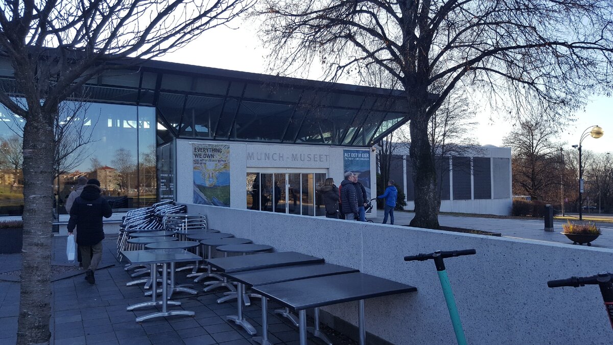 Музей Мунка, основанный в 1963 году, будет закрыт этой весной-он переезжает в новое хайтечное уродливое здание-вот эта громада за строительными вагончиками: Да и старый музей не отличался изяществом☺: Вид с парковки на музей сквозь контейнеры со щебенкой-вполне себе инсталляция в стиле современного искусства☺: В данный момент открыто 2 комнатки с последней выставкой "Все, что мы имеем" в старом здании музея и плюс еще одна комнатка с 2 картинами. На выставке представлены 4 коллекции, переданные городу Осло самим Мунком, а также норвежскими коллекционерами Стенерсеном, семьей Нильсена и вдовой Равенсберга. Мунк для норвежцев-это как все наши художники из Третьяковской галереи вместе взятые. 95% норвежцев могут назвать только его имя, если их спросить о норвежских художниках. Мне его творчество не близко, очень мягко говоря🤣 Вот шедевры Мунка в 1 комнате-15 полотен: В Норвегии действительно были хорошие художники. Например, натуралист Амальдус Нильсен, работы которого сейчас предс