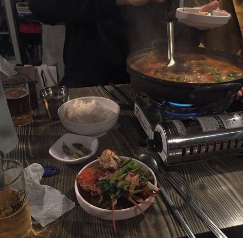 Смешным, если можно так сказать, в этой истории было то, что перед поездкой я чуть ли не с пеной у рта доказывала всем друзьям и знакомым, что собак в Корее не едят, а если и едят, то только старшее поколение и только в специальных ресторанах и районах Сеула, а по итогу нас данным блюдом угостила молодая компания чуть ли не в центре Итэвона.