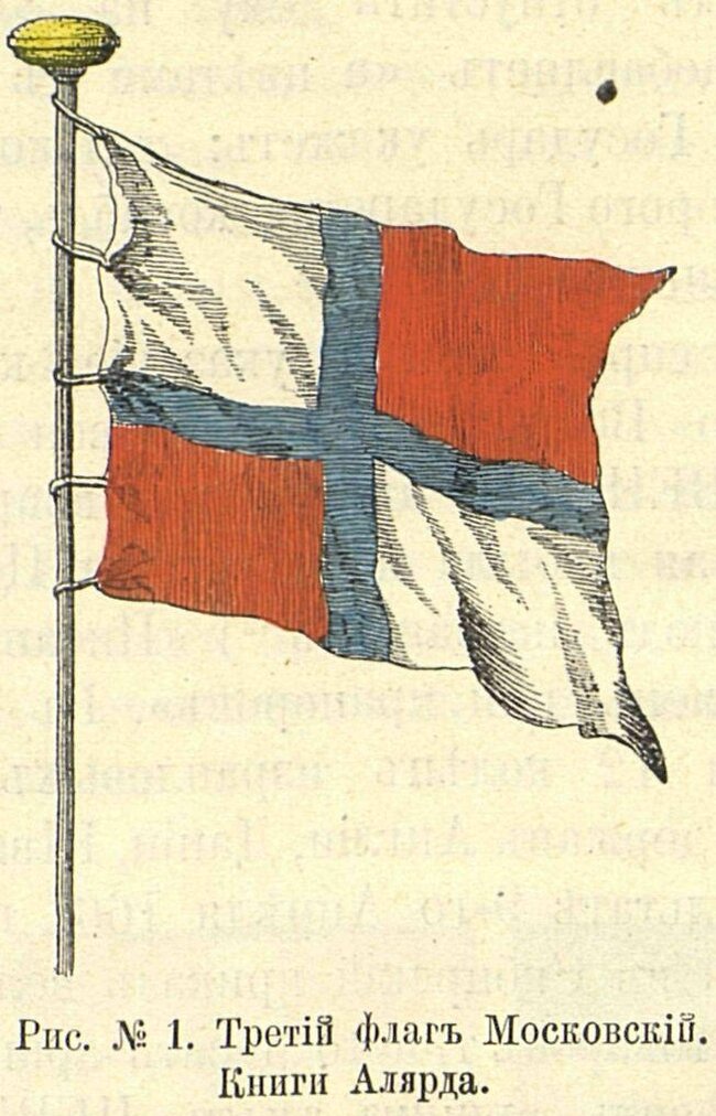 Первый бело-сине-красный флаг России был утверждён в 1668 году царём Алексеем Михайловичем как корабельное знамя фрегата «Орёл». Порядок цветов и точный дизайн флага неизвестен, он мог быть триколором или крестовым. Предположительно это было белое полотно, с широким синим крестом, с двумя противоположными красными углами и двумя противоположными белыми углами.
