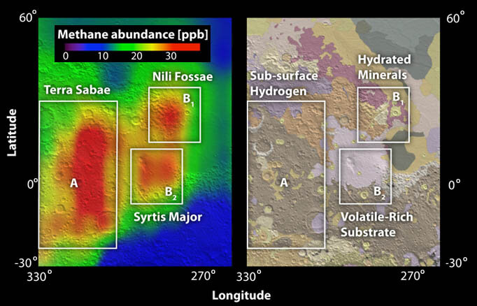 Метановые выбросы зарегистрировали одновременно американские и российские астрономы, а через год эти данные были подтверждены с марсианской орбиты спутником Mars Express, т.е. ошибки быть не могло. Значит ученым потребовалось найти ответ откуда он взялся. Объяснить всё марсианской жизнью слишком заманчиво, но недостаточно аргументировано. Метан может быть результатом геофизической активности марсианских недр, может вырабатываться в некоторых реакциях окисления железа… Однозначно можно было сказать, что это метан сегодняшний, по геологическим меркам, т.к. под солнечным ультрафиолетом органика в атмосфере распадается за несколько сот лет.