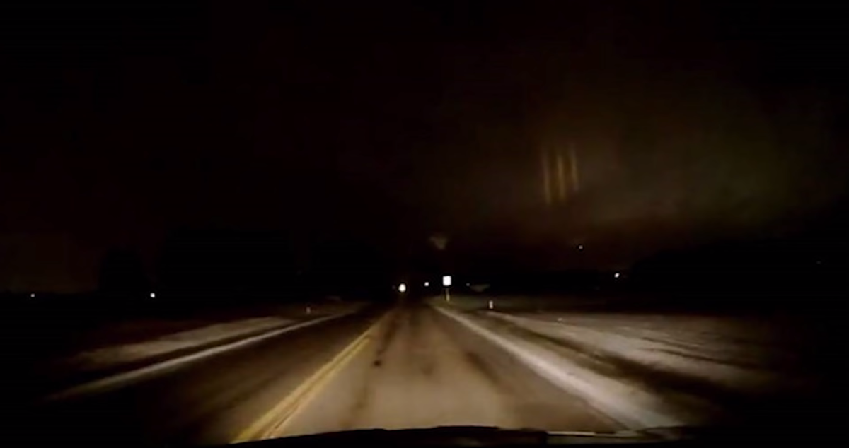 1) Автор данного видео , ехал по шоссе и по правую руку от себя увидел 3 луча.