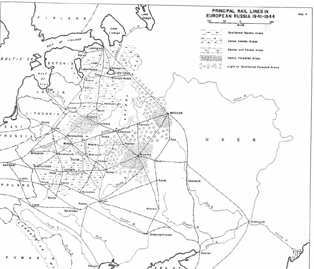 Это схема рельсовой войны 1941-1944 года, без которой невозможно представить себе Великую победу. Здесь мы можем видеть ключевые железнодорожные пути и распределение разного рода труднопроходимой местности на оккупированных в различное время территориях. Как видно, непроходимые чащи и болота формируют несгибаемый характер. Самые дремучие леса - под Москвой, под Брянском и в районе Полоцка. Именно здесь бородатые суровые ребята наводили наибольший кошмар на врагов. К сожалению, здесь был и самый жестокий террор против населения. Особенно тяжело пришлось белорусам. Свою историческую миссию и вклад здесь поняли очень рано, так что уже 2 июня 1942 г. ЦК КП(б)Б, находясь временно в Москве, принял решение о сборе материалов о этой войне для создания будущего музея. Впереди было ещё два года кровопролития, но в победе никто не сомневался. Украине с её степями в большей степени досталось геройствовать в городском подполье. Например в криворожье действовало около 14 только советских подпольн