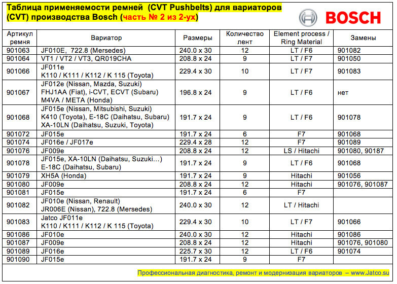 Обратите внимание. Для самых популярных моделей вариаторов Jatco есть выбор(!) той или иной модели ремня. При этом некоторые модели ремней (у той же Bosch) уже сняты с производcтва: