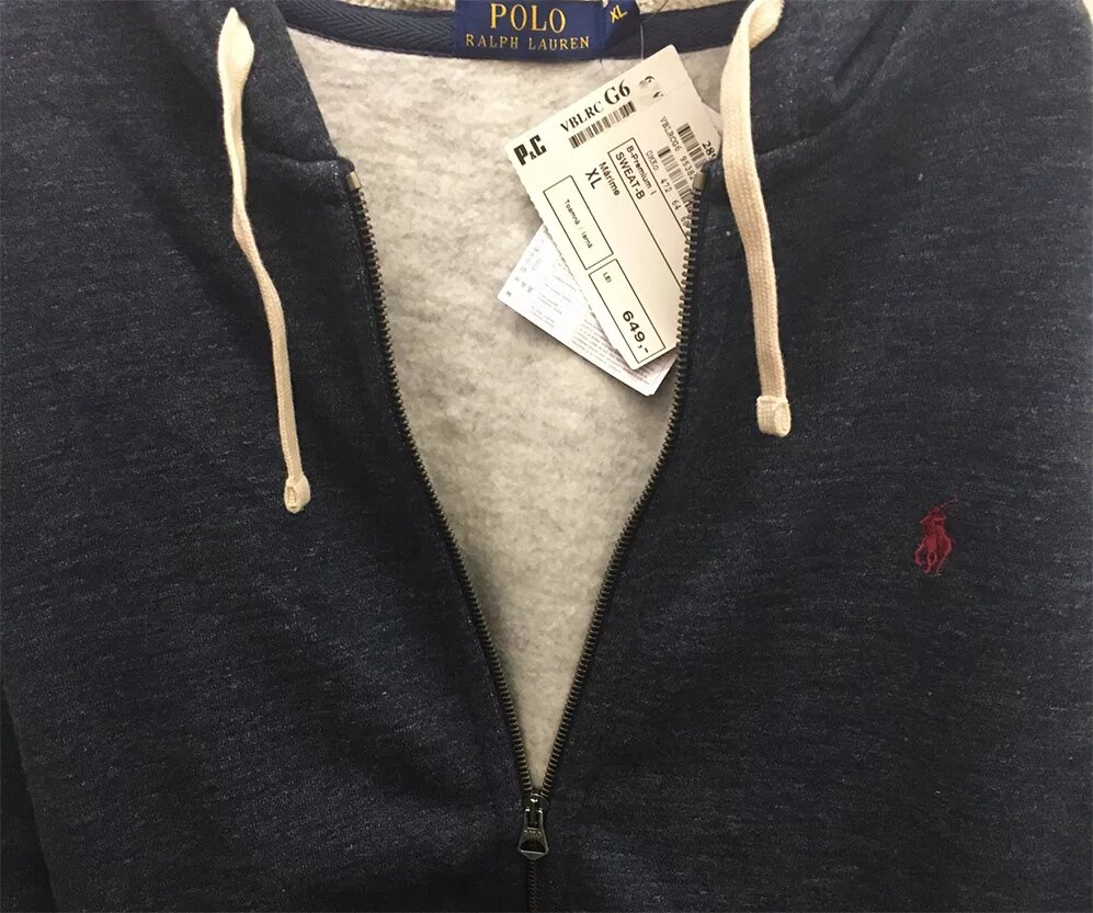 1. Худи Ralph Lauren Polo у нас темно-синего цвета. Шнурки – белые, а подкладка – светло-серая.