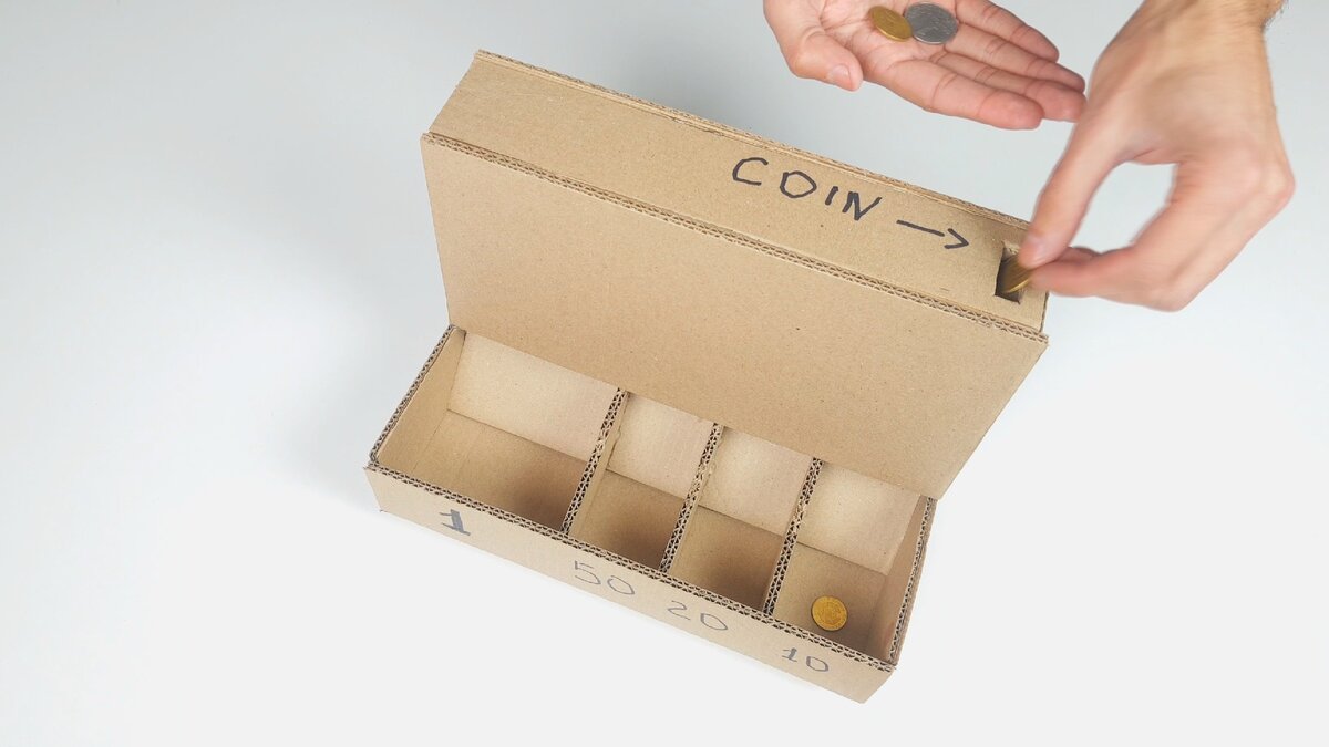 Делаем аппарат для сортировки монет из гофрированного картона.