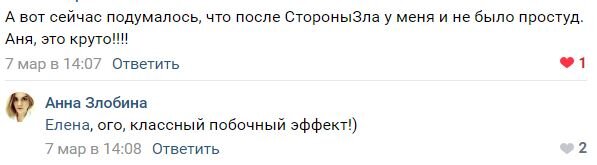 Итог: повышение уверенности в себе, ясность ума, улучшение настроения, снижение тревожности. Значительное улучшение иммунитета (в комментариях под первым постом этой серии одна участница писала, что до “Стороны Зла” болела постоянно, а после, поддерживая внедрённые пищевые привычки, вообще забыла о простудах).