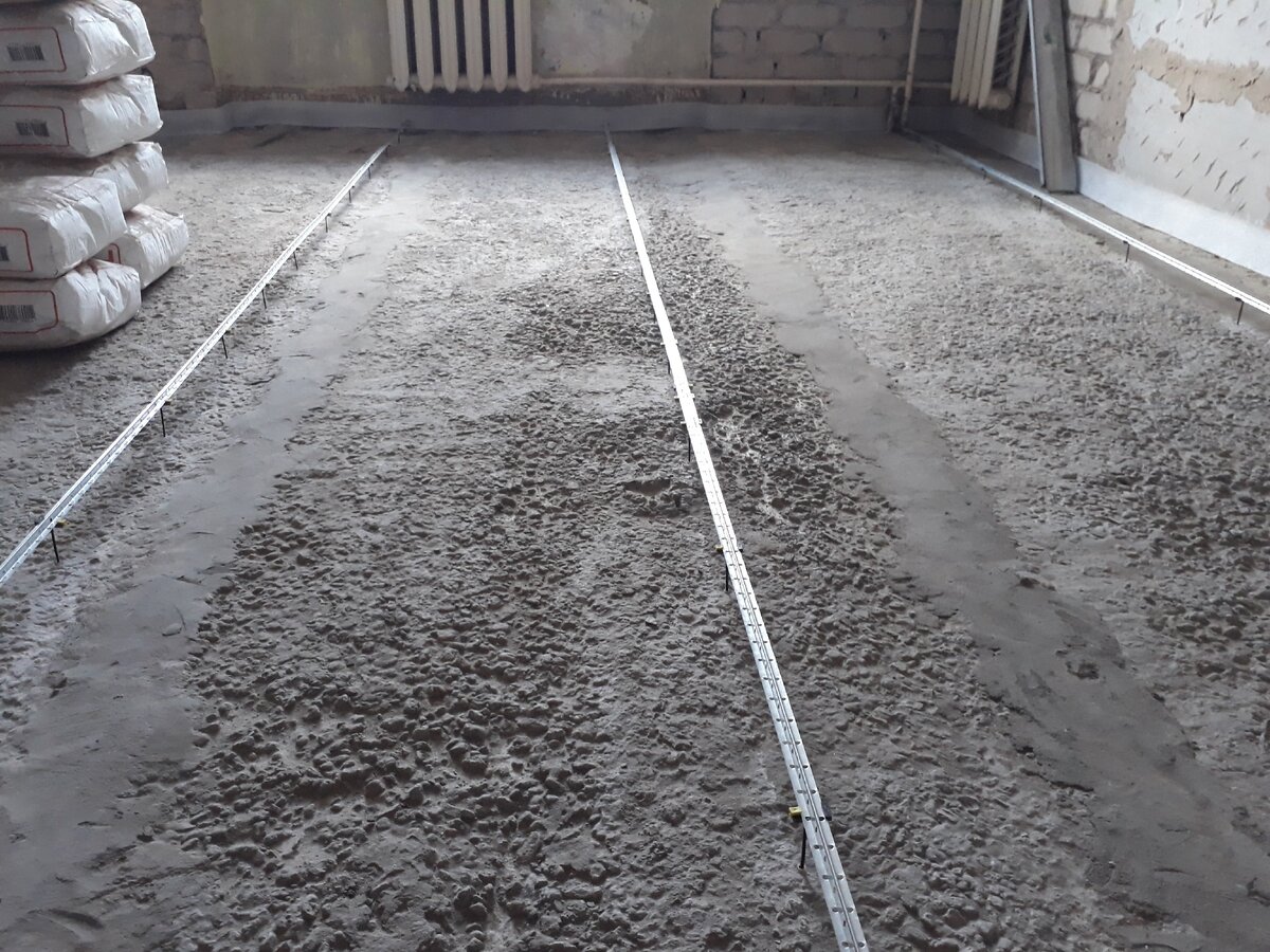Стяжка пола-необходимый этап любого ремонта. 1. Уборка и обеспыливание пылесосом. Не стоит пренебрегать этим этапом. От пыли и мусора стяжка может отслоиться. 2. Грунтовка. Этим мы уменьшаем впитываемость основания, что важно для стяжки. Наносится валиком или краскопультом. 3. Поиск самой высокой точки. Очень пригодится лазерный осепостроитель. Ставим лазер на высоту 1м, затем рулеткой проходим по всей комнате, так находим самую высокую точку. 4 Демпферная лента. Монтируем при помощи силикона или степлера по периметру и обходим все имеющиеся трубы. Эта тонкость поможет компенсировать линейное расширение, улучшить шумоизоляцию. 5. Установка маяков. Самый простой вариант: устанавливаем маяки при помощи лазерного уровня на специальные крепления для них. Монтируются быстро и можно сразу приступать к заливке стяжки. 6 Заливка стяжки. Размешиваем цементно - песчанную смесь при помощи миксера строго по инструкции. Стягиваем стяжку при помощи алюминиевого правило по маякам (в качестве арми