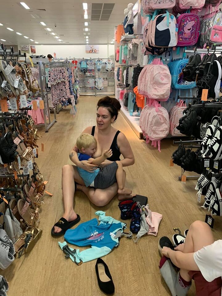Мама покормила грудью 3-летнего сына, сидя на полу в магазине