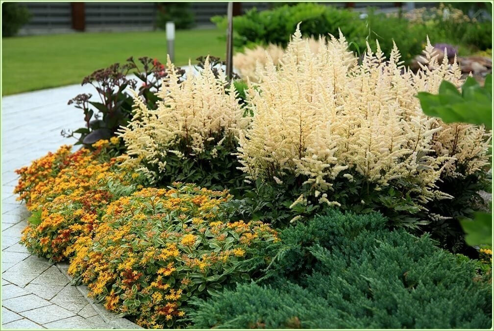 Все садоводы и огородники стремятся создать участок невероятной красоты, ищут новые, не избитые растения, но в тоже время неприхотливые и желательно многолетники, но где же взять такой волшебный экземпляр. Главные ее плюсы. Чтобы астильба быстро и без проблем прижилась,нужно правильно выбрать время и место посадки. Если тепла и влаги достаточно, то расти она будет быстро (свет не нужен для быстрого развития). Совет: Основание растения следует усыпать опилками/шелухой/листьями, чтобы влага удерживалась в почве. Когда выбираете место для посадки астильбы, учитывайте в какие время цветет выбранный вами вид. Например, виды цветущие в июле-сажать в затенении.Поздние и ранние сорта можно сажать как на солнце, так и в тени. Астильба требует большого содержания калия и фосфора в почве. Перед посадкой можно внести комплексные удобрения и перегной. Прекрасно будет сочетаться с другими теневыносливыми растениями. Отлично подойдет бадан, ландыши, тюльпаны, ирисы, морозник.