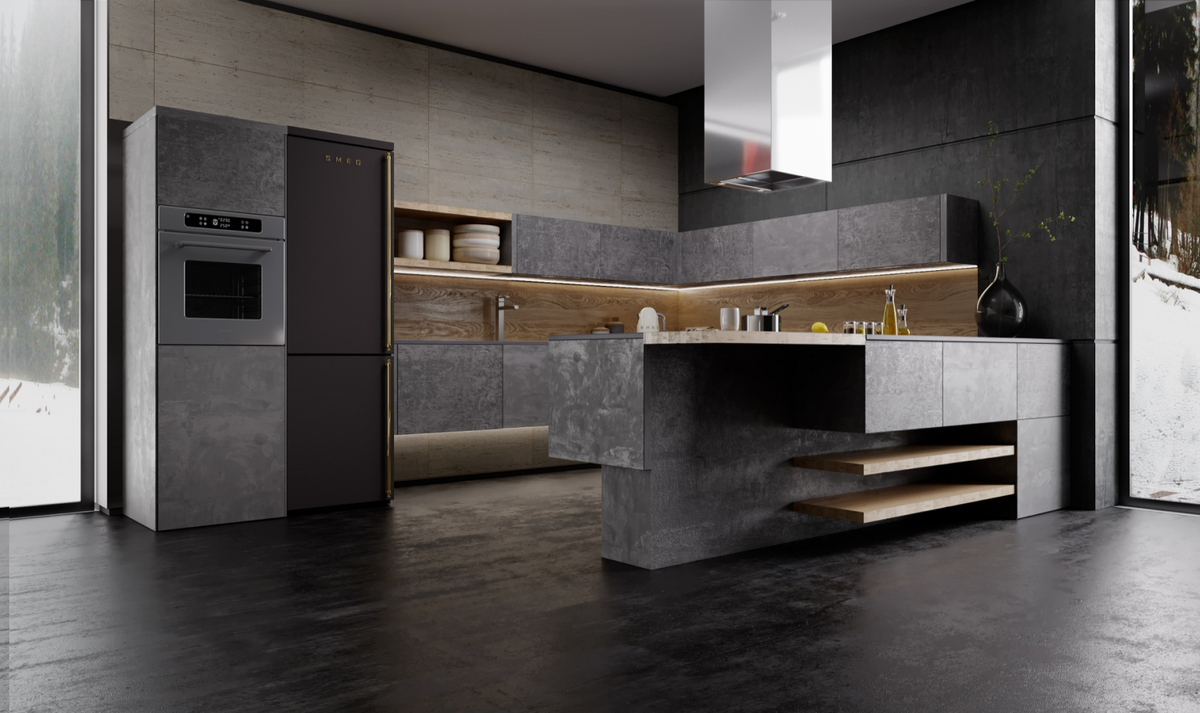 Когда хочется сделать кухню стильной, необычной и в то же время естественной и экологичной – выбирают каменные фасады гарнитура. Это новый тренд в направлениях лофт, хай-тек, брутализм. Каменный шпон Фасады делают не цельно каменными – так они были бы тяжелыми и неудобными в использовании. Фасады представляют собой МДФ, декорированную каменным шпоном. Каменный шпон – это тонкий срез натурального камня толщиной 1-3 мм. Лицевую сторону обрабатывают защитной пропиткой, которая защищает фасад от грязи, пыли и масла. Фасады из шпона долговечны и практичны. Они не изменят цвет под воздействием солнечных лучей, а незначительные царапины можно отреставрировать. Природная экологичность камня безопасна для здоровья. Кухни с использованием каменного шпона Использование такого материала для кухни придает дому солидность, изысканность и роскошь. Гарнитур выглядит монолитно, властно, отражает сильную личность владельца. К такому гарнитуру подойдет мойка из искусственного камня, которая визуальн