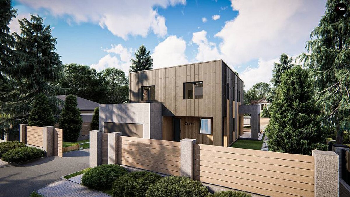 Проект Zx171– хорошее решение для больших семей, ведь в доме спроектировано 4 просторных спальни. Дом комфортный, функциональный, светлый, эргономичный и уютный. Проект отличается современным оригинальным оформлением фасадов.