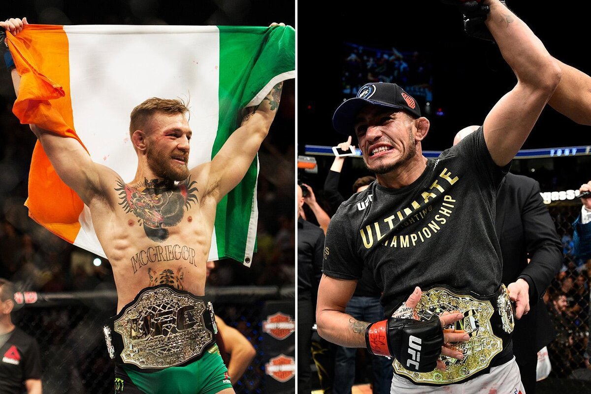 Салам бабайчикам, если Джинтоник Фергсюон победит Хабиба Нурмагомедова, то он проведет свой следующий бой против короля двухвесовых Конора Макгрегора. И если такое случиться, то давайте разберем этот бой. Вот Тони победил Хабиба и становиться чемпон дивизиона и в момент когда ему надевают пояс в октагон через сетку через тройное сальто и ударом ногой по папахе влетает Конор Макгрегор, отбирает пояс и начинается конфликт. Драка между 3-я стихиями: Конор, Хабиб, Тони. Конор нокаутирует обоих и убегает домой. У него 3 звезды преступности, но все же он успевает скрыться. Позже их бой с Тони официально подтвердили. Спустя недели происходит пресс конференция на которой Конор и Джинтоник обзывались и кидали друг в друга бумажки. В конце пресухи был фейс ту фейс где оба бойца посмотрели друг другу в глаза и пожали руки. Через какое-то время на взвешивании произошло почти то же самое. Уберем рукопожатие. Конор дал чаполах левым мизинцем Тони и началась драка, всех разняли, все ушли, но Тони о