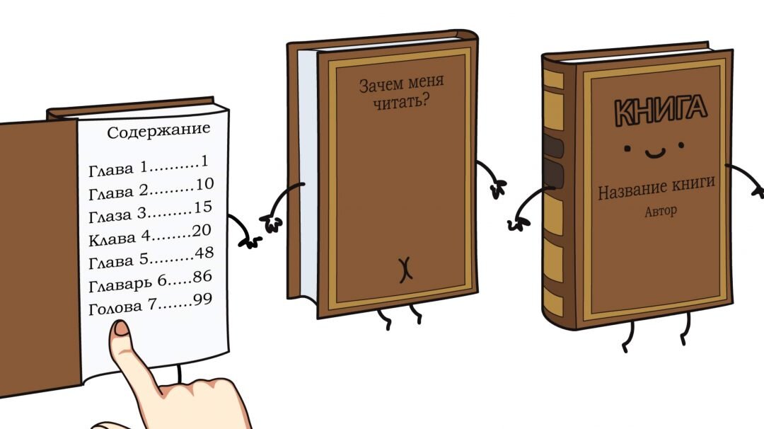 Внимательно посмотрите переднюю и заднюю стороны обложки, содержание. Попробуйте понять структуру книги: