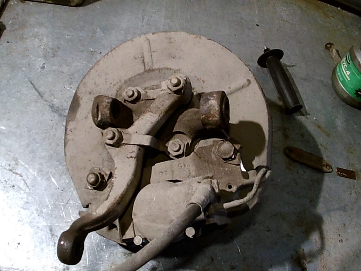 Не все идет гладко. Гайки открутились легко, а чтобы вытащить болты, пришлось греть поворотную цапфу почти докрасна.