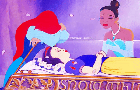 Единственным грехом Белоснежки было то, что она была самой светлокожей в сказке, из-за чего ей пришлось убежать в лес, где она поселилась у семи гномов. Злая колдунья дает ей отравленное яблоко, Белоснежка погружается в сон, гномы пытаются отомстить, и колдунья падает с обрыва и погибает. Пока Белоснежка спит, откуда ни возьмись появляется принц и возвращает ее к жизни. После этого они живут долго и счастливо.
