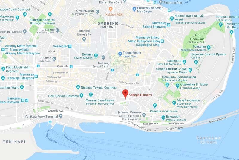 Посещение турецкой бани (хамама) – одно из самых топовых туристических развлечений в Стамбуле. Особенно, если вы (как и я) вообще по жизни являетесь поклонником бань и парения. И при планировании Стамбульского путешествия выходного дня, я конечно же, включила туда и турецкую баньку. Хотелось, чтобы хамам был настоящим, нетуристическим, старинной постройки, недорогим и находился недалеко от моего замечательного отеля Deniz Houses. Таким критериям, на первый взгляд, соответствовал Кадирга хамам (Kadirga Hamam), который расположен вот тут. Уже на месте, гуляя по Стамбулу, я посмотрела еще парочку – один из которых Sifa Hamam. Но душа как-то к ним не легла – оба туристические (хотя их служащие утверждают, что это не так) и цены довольно внушительные – в тот же Сифе хамам полный пакет парение+ скраб+массаж стоит около 120 лир (примерно 1500 рублей). Поэтому, в назначенный день с утра пораньше (примерно в 11.30) я потопала в свой Кадирга хамам. Пришлось слегка поплутать по улочкам, которые
